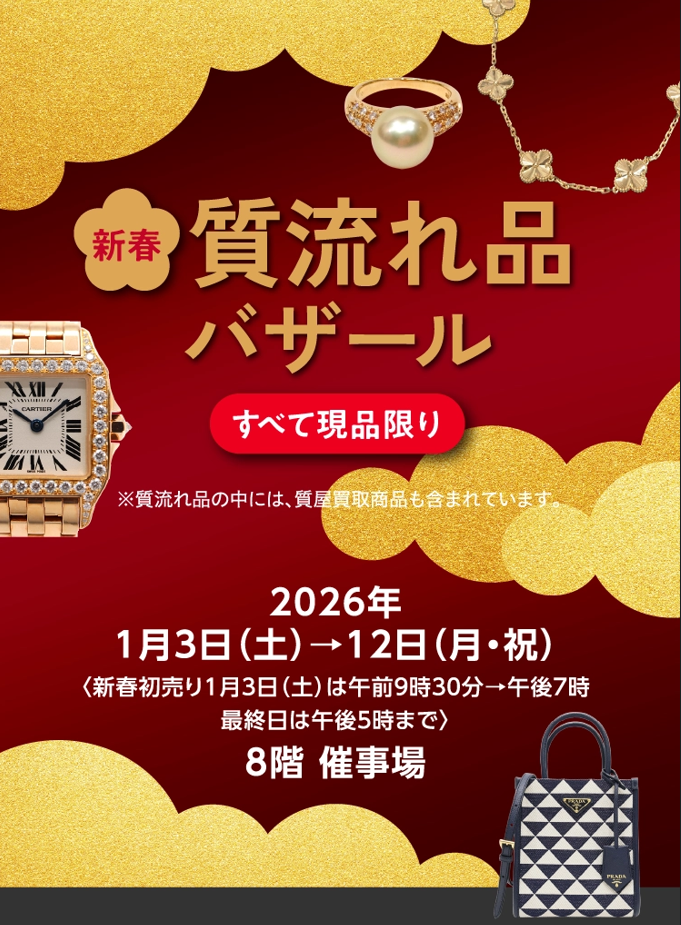 する 「新春 質流れバザール」 を開催します。宝探し気分で楽しめるラインナップは、きっとあなたのお気に入りが見つかるはずです✨