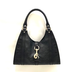 #GUCCI GGシマライン ハンドバッグを買い取らせて頂きました。グッチのGGマークが全面にあしらわれ、真ん中のゴールドの留め金があることで、上品さだけでなく、お洒落さもアップします。