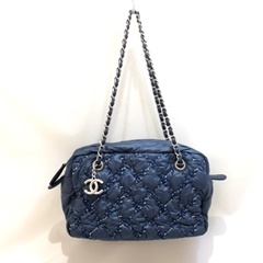 #CHANEL ナイロン チェーンショルダーバッグを買い取らせて頂きました。お色は、落ち着いたネイビー。催事に出させていただいてもお客様の目をひく商品になりそうです。