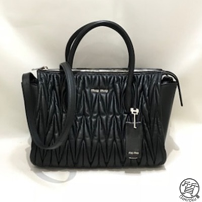 #MIUMIU 2WAYトートバッグ を買い取らせて頂きました。ギャザー生地にシルバーのロゴがはえ、お洒落なバッグです。もうお使いにならないということでお持ち込み頂きました。お客様に喜んで頂きました