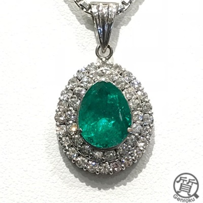 エメラルド ダイヤ ネックレスを買い取らせて頂きました。大きなエメラルドの周りにダイヤがちりばめられ、大変豪華なデザインです。もうお使いにならないということで、お持ち込み頂きました。お客様に喜んで頂きました