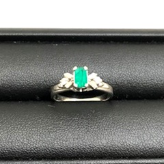Pt850 エメラルド ダイヤ 指輪を買い取らせて頂きました。エメラルドの両サイドにダイヤが置かれ、高さがあり、ゴージャス感があります。