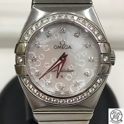 #OMEGA コンステレーション 婦人腕時計を買い取らせて頂きました。文字盤に舞うオメガのロゴマークと散りばめられたダイヤがキラキラと輝き、豪華さの中に、上品さも兼ね備えた時計です。もうお使いにならないとのことでお持ち込み頂きました。